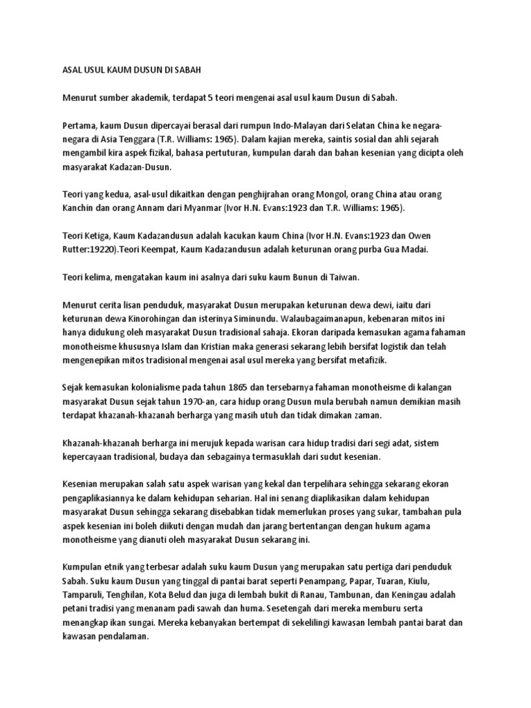 Asal Usul Kaum Dusun Di Sabah Pdf